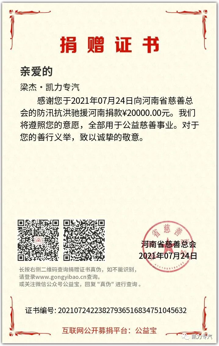 【凱力公益】風(fēng)“豫”相“隨” 共筑家園 ——?jiǎng)P力專汽捐款捐物馳援河南新鄉(xiāng)