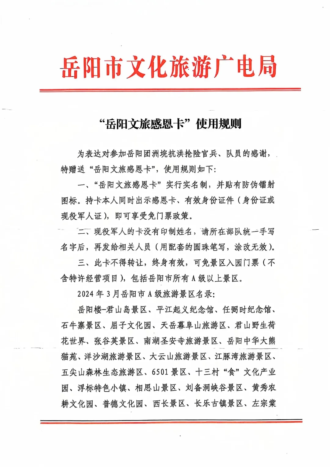 而岳陽文旅感恩卡的禮贈,不僅僅是一張免費(fèi)游玩的憑證,更是對這些英雄們的崇高敬意和深深感恩。