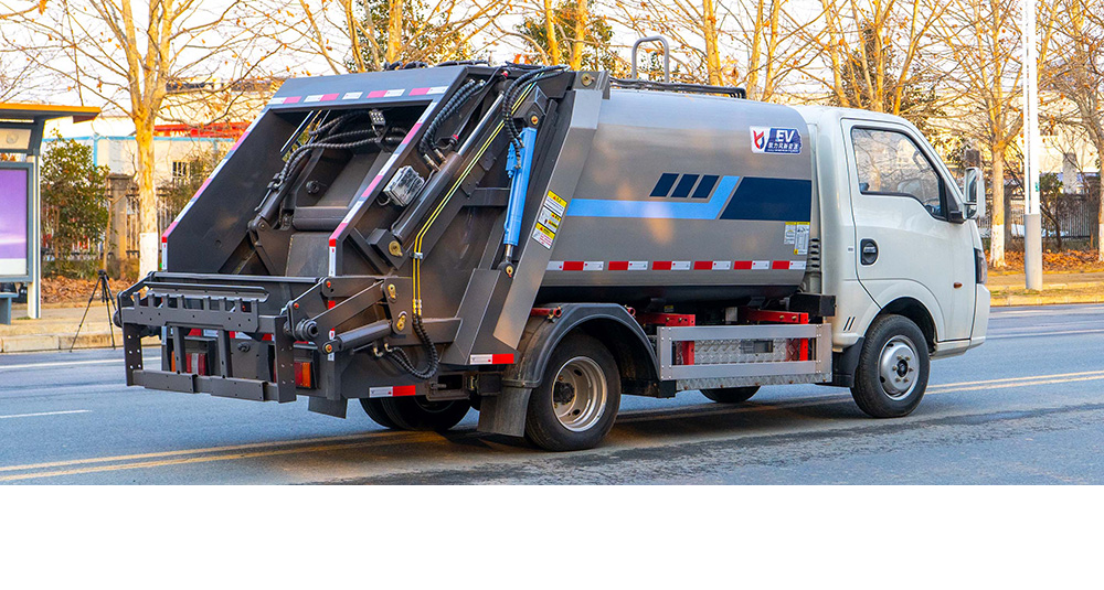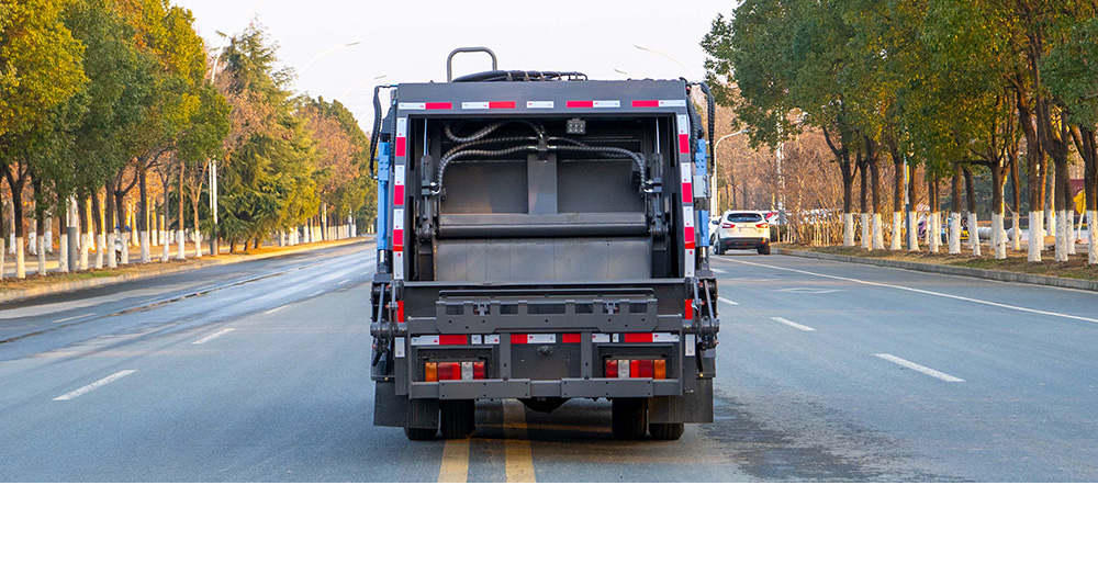 弧形箱體采用四軸卷板機(jī)滾弧一次成型,減少焊接面,增大容積率;優(yōu)化滑板角度及油缸受力點(diǎn),壓縮比超市場(chǎng)競(jìng)品20%。