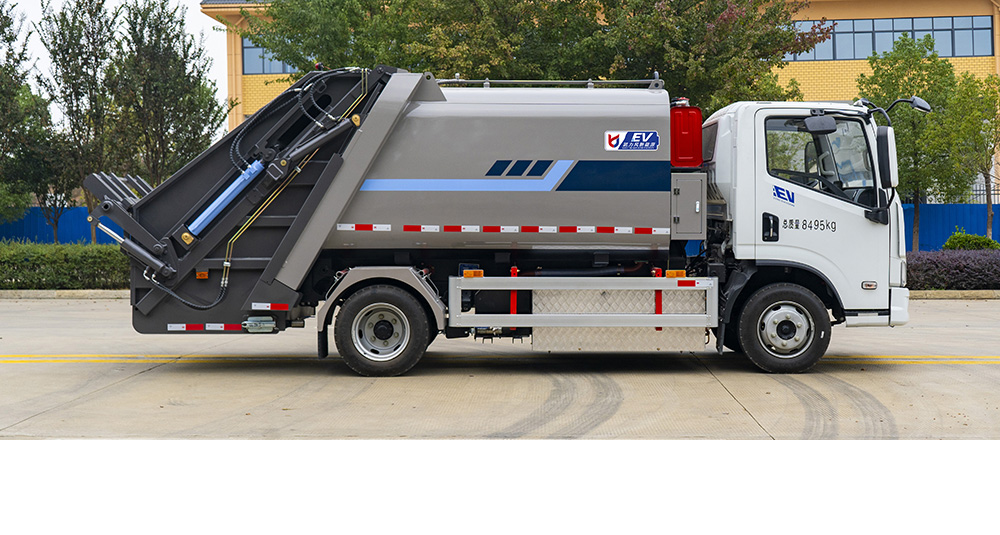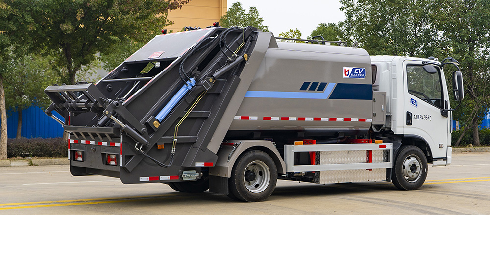 弧形箱體采用四軸卷板機(jī)滾弧一次成型,減少焊接面,增大容積率;優(yōu)化滑板角度及油缸受力點(diǎn),壓縮比超市場競品20%。
