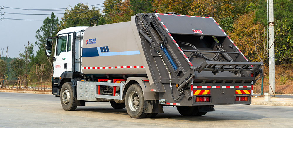 弧形箱體采用四軸卷板機(jī)滾弧一次成型,減少焊接面,增大容積率;優(yōu)化滑板角度及油缸受力點,壓縮比超市場競品20%。