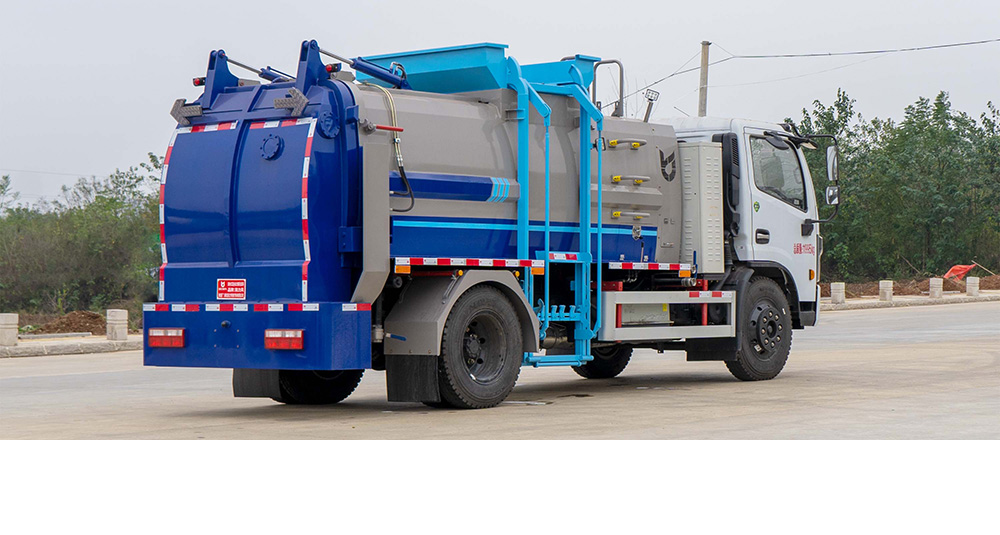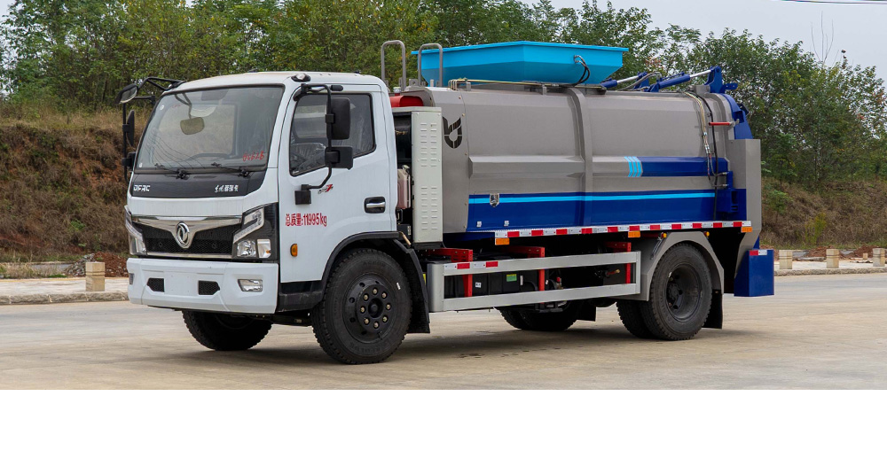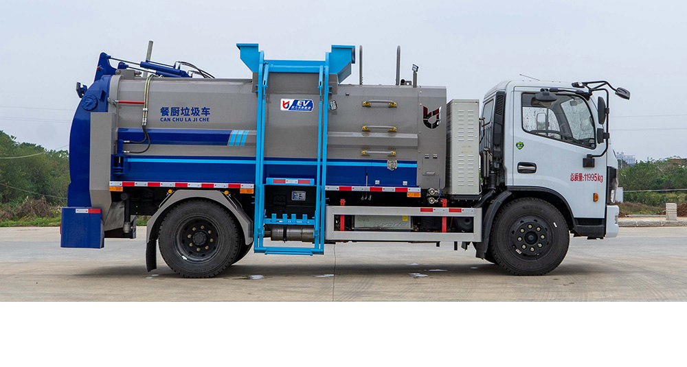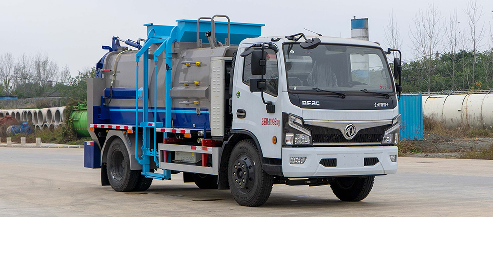 垃圾箱底部設置大量過濾孔,實現(xiàn)箱內(nèi)餐廚垃圾固液的初步分離,裝載能力強并配備有大容量污水箱;配套液壓驅(qū)動高壓清洗系統(tǒng),可對整車及工作裝置進行清洗。