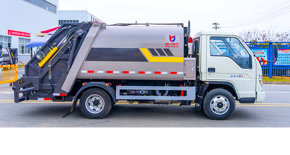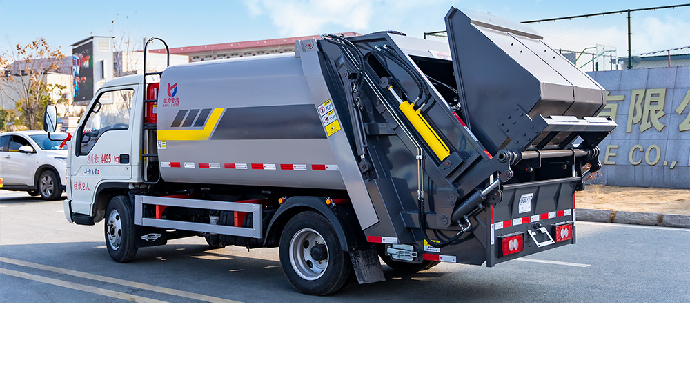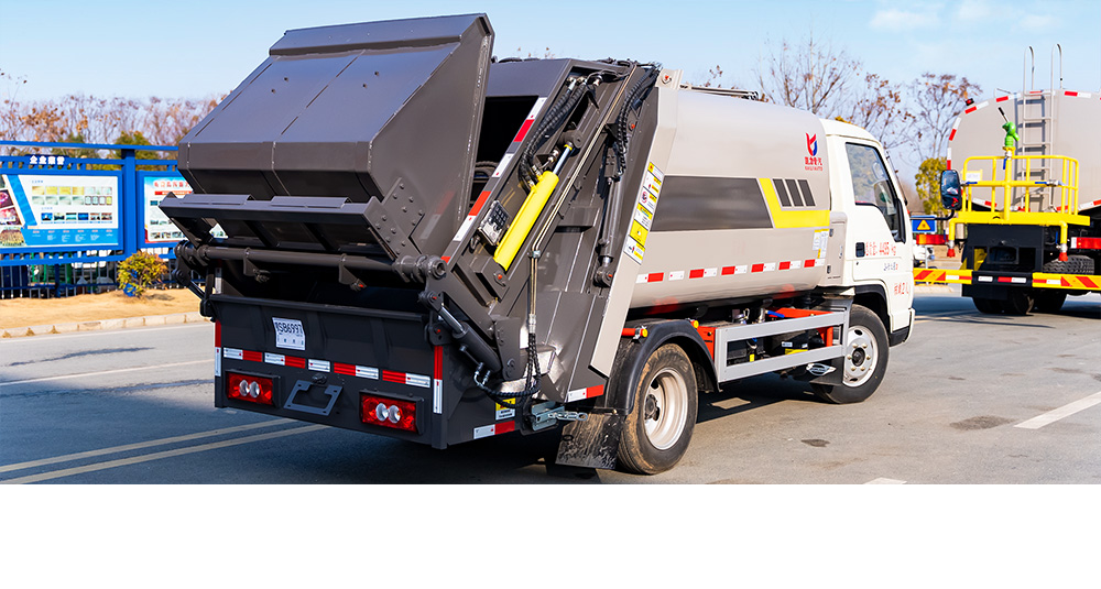 弧形箱體采用四軸卷板機(jī)滾弧一次成型,減少焊接面,增大容積率;優(yōu)化滑板角度及油缸受力點(diǎn),壓縮比超市場(chǎng)競(jìng)品20%。