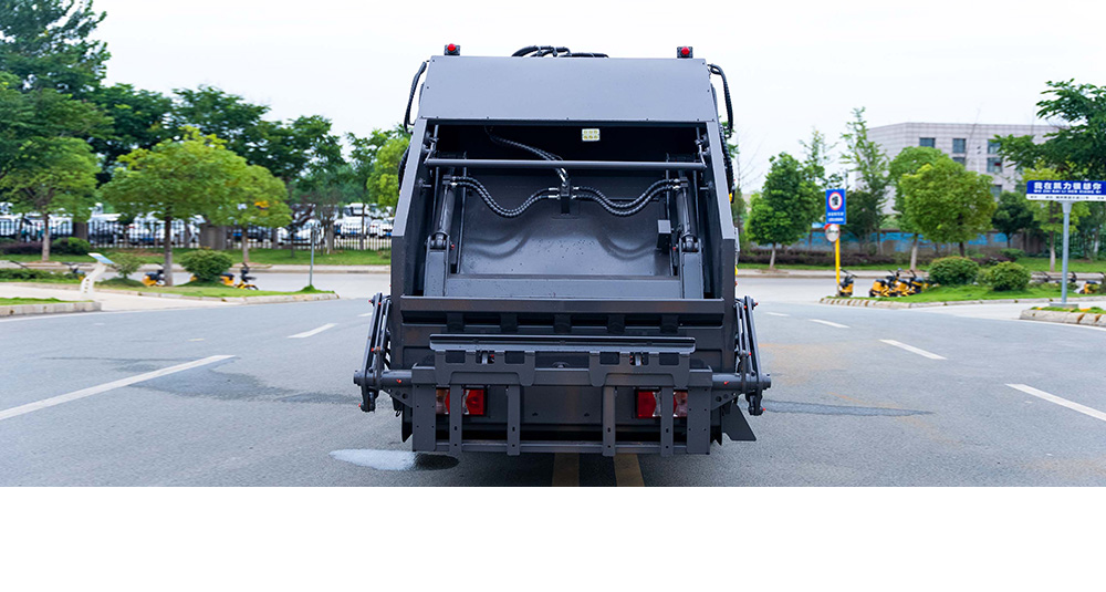 弧形箱體采用四軸卷板機(jī)滾弧一次成型,減少焊接面,增大容積率;優(yōu)化滑板角度及油缸受力點(diǎn),壓縮比超市場(chǎng)競(jìng)品20%。