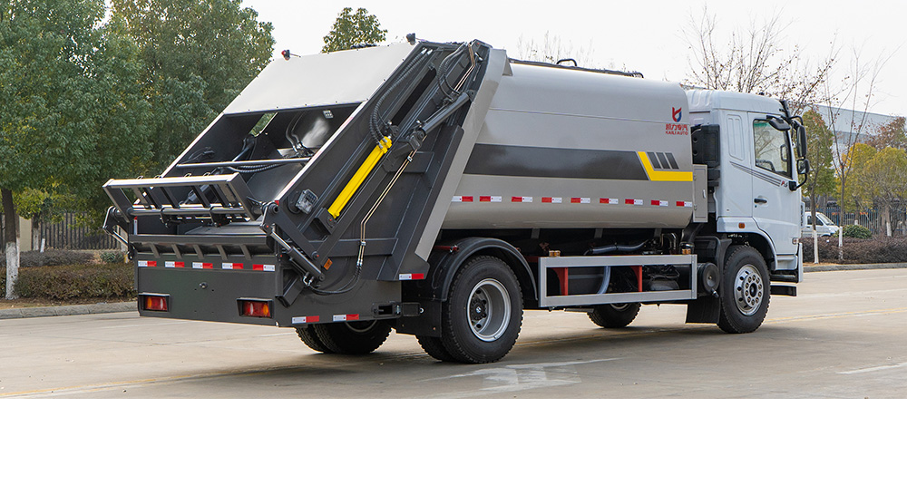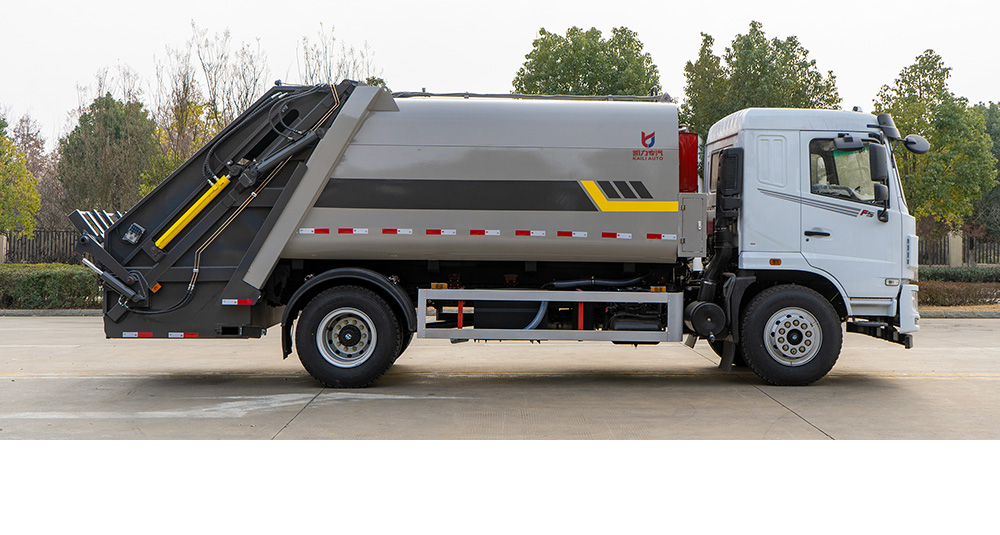 弧形箱體采用四軸卷板機(jī)滾弧一次成型,減少焊接面,增大容積率;優(yōu)化滑板角度及油缸受力點(diǎn),壓縮比超市場競品20%。