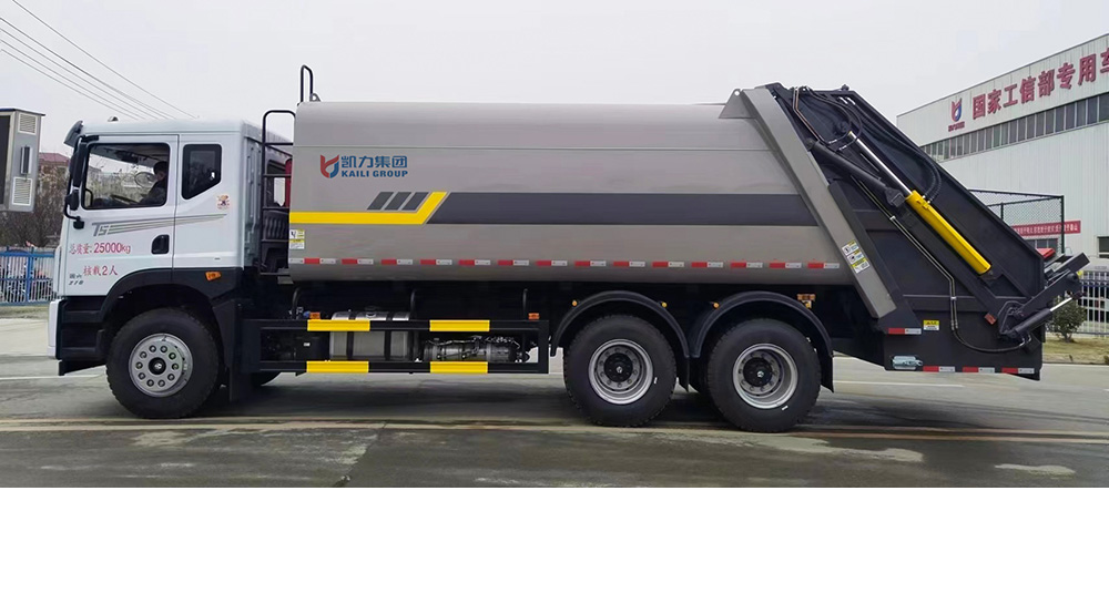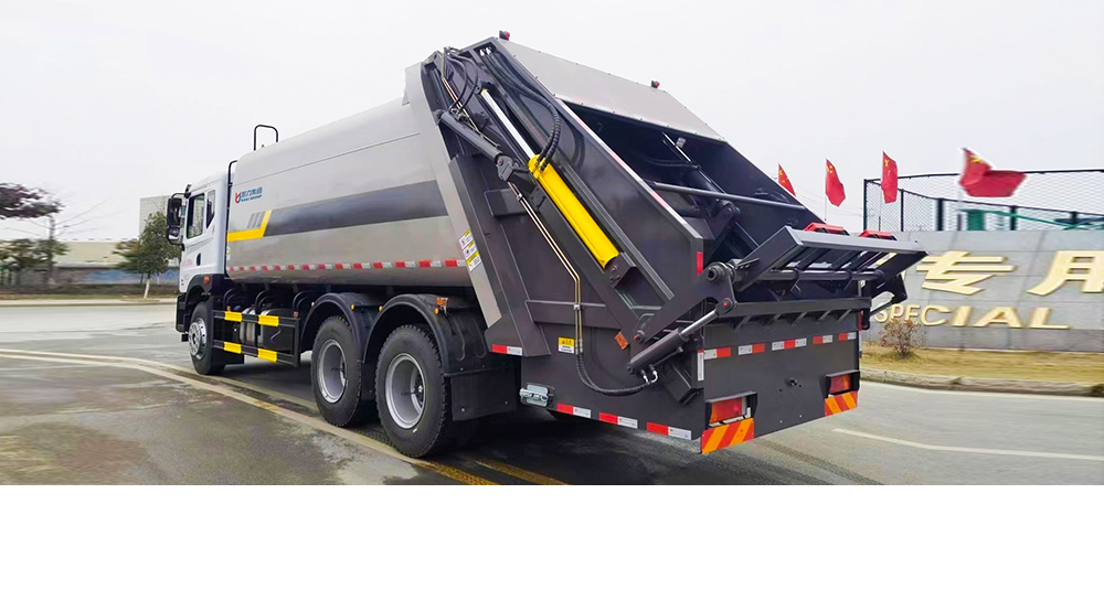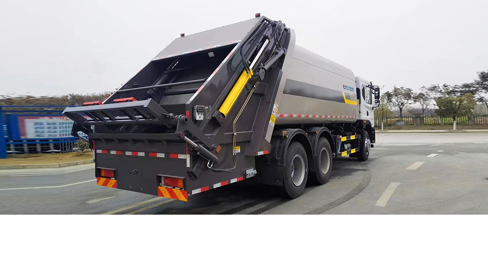 弧形箱體采用四軸卷板機(jī)滾弧一次成型,減少焊接面,增大容積率;優(yōu)化滑板角度及油缸受力點(diǎn),壓縮比超市場(chǎng)競(jìng)品20%。