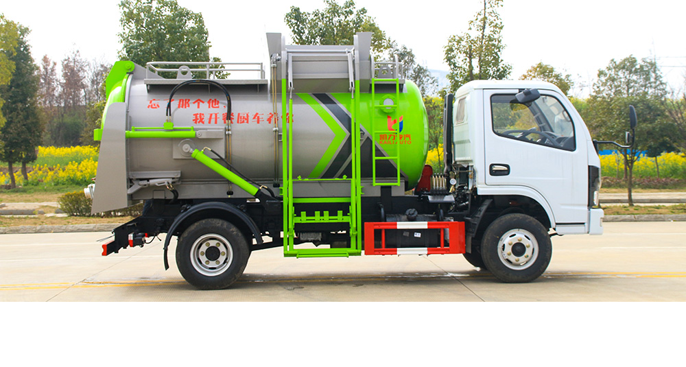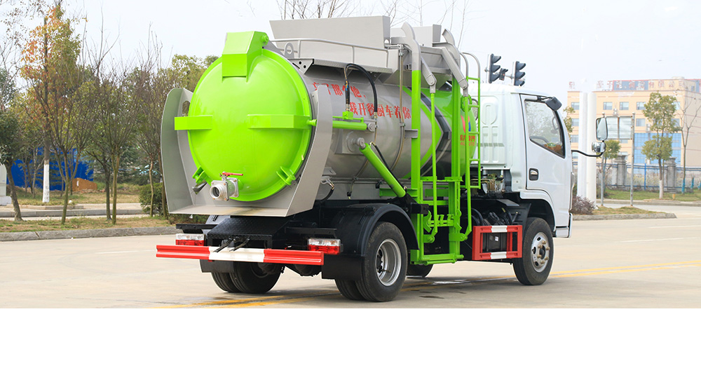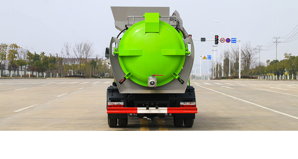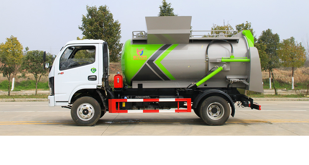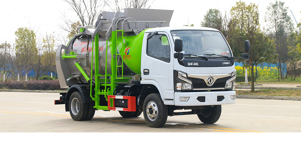 垃圾箱底部設置大量過濾孔,實現(xiàn)箱內(nèi)餐廚垃圾固液的初步分離,裝載能力強并配備有大容量污水箱;配套波壓驅(qū)動高壓清洗系統(tǒng),可對整車及工作裝置進行清洗。