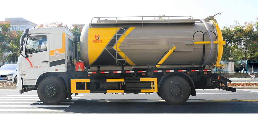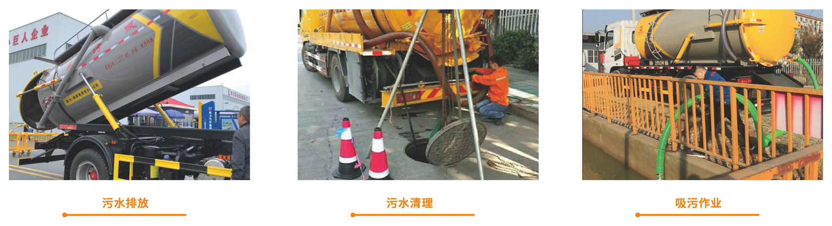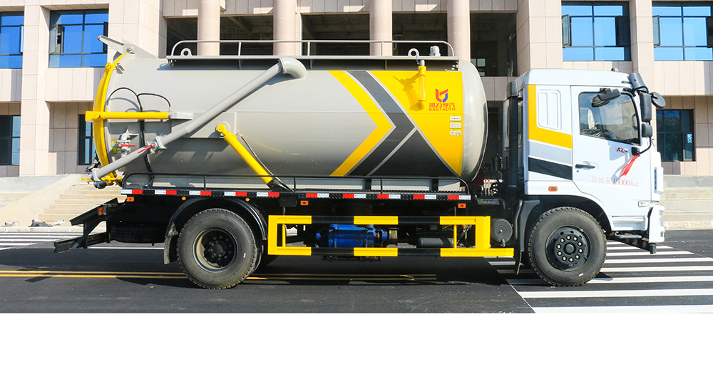 吸污車由汽車底盤(pán)、取力器、傳動(dòng)軸、真空吸污泵、壓力罐體、液壓部分、管網(wǎng)系統(tǒng)、真空壓力表、視糞窗、洗手裝置等組成,隨車配置大功率真空吸污泵和優(yōu)質(zhì)液壓系統(tǒng),罐體封頭一次壓鑄成型、罐體可后開(kāi)、雙頂自卸。