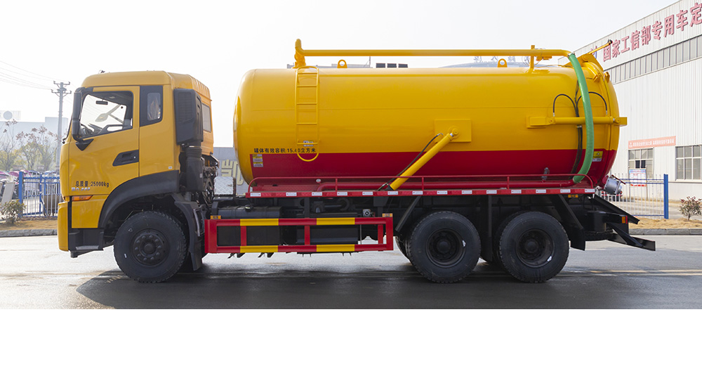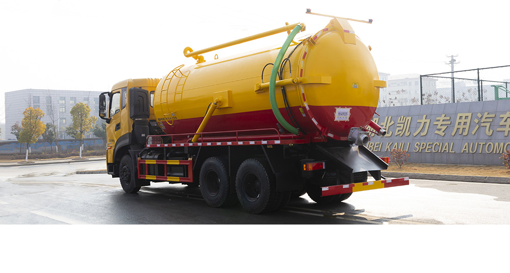 吸污車(chē)由汽車(chē)底盤(pán)、取力器、傳動(dòng)軸、真空吸污泵、壓力罐體、液壓部分、管網(wǎng)系統(tǒng)、真空壓力表、視糞窗、洗手裝置等組成,隨車(chē)配置大功率真空吸污泵和優(yōu)質(zhì)液壓系統(tǒng),罐體封頭一次壓鑄成型、罐體可后開(kāi)、雙頂自卸。