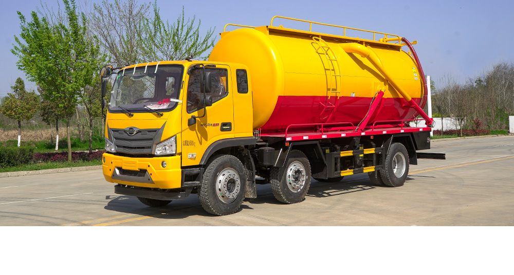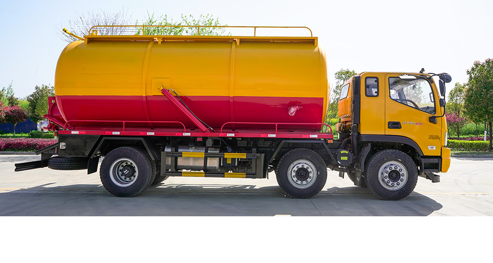 吸污車由汽車底盤、取力器、傳動軸、真空吸污泵、壓力罐體、液壓部分、管網(wǎng)系統(tǒng)、真空壓力表、視糞窗、洗手裝置等組成,隨車配置大功率真空吸污泵和優(yōu)質(zhì)液壓系統(tǒng),罐體封頭一次壓鑄成型、罐體可后開、雙頂自卸。
