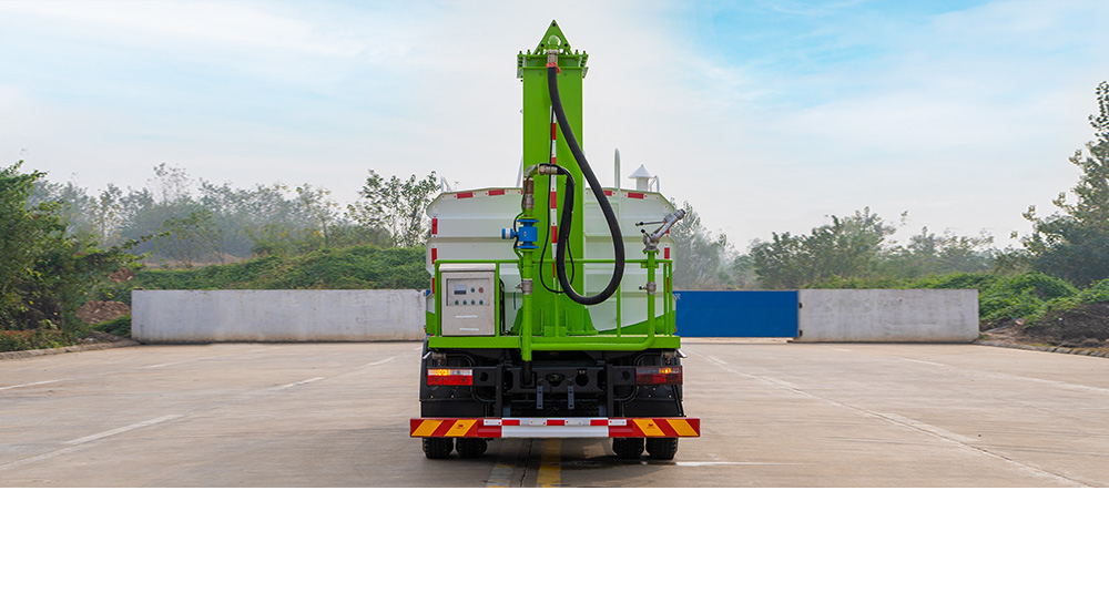 該車輛結(jié)構(gòu)緊湊、布局合理、部件做工精細(xì)、產(chǎn)品配置完善、操作性能好,采用橢圓形或者方圓形結(jié)構(gòu)水罐,駕駛室和罐體中間有量管,使水罐內(nèi)的水量一目了然。罐體尾部有操作平臺(tái),平臺(tái)有安全防護(hù)欄保障操作人員安全,平臺(tái)上有爬梯方便操作人員上下車觀察罐內(nèi)情況。