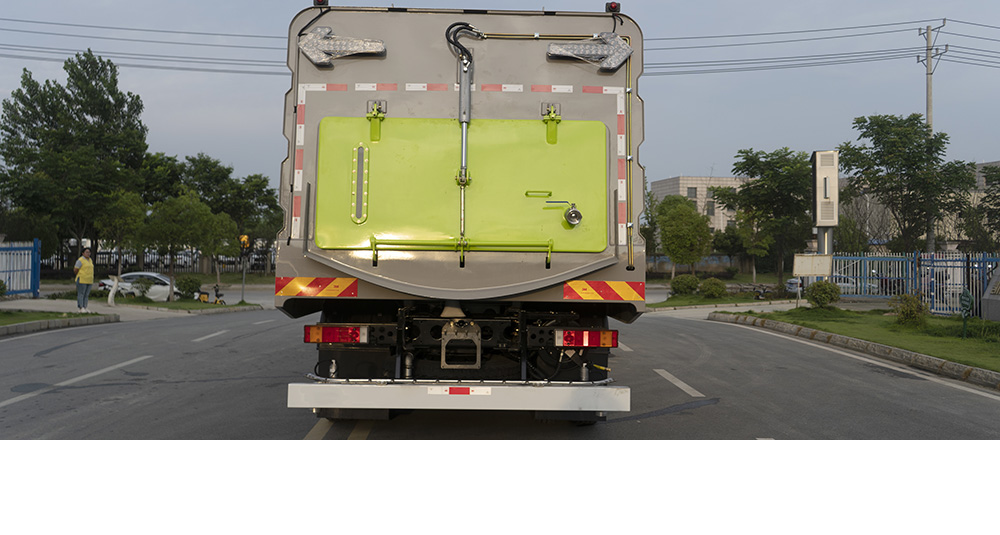清水箱和垃圾箱分體布置,有效空間利用最大化,一次連續(xù)作業(yè)時(shí)間長。同時(shí)在作業(yè)過程中可通過污水排放裝置對污水進(jìn)行排放,還可隨時(shí)增灌清水繼續(xù)作業(yè):垃圾箱采用雙油缸自卸卸料,同時(shí)箱內(nèi)設(shè)有大流量高壓噴,可快速沖洗垃圾。