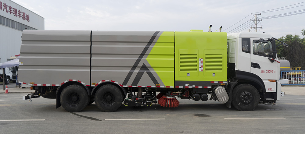 具有路面灑水、沖洗、掃路、清洗、降塵等多種功能。同時(shí)配有高壓水槍可對道路衛(wèi)生死角、牛皮癬及車輛自身進(jìn)行清潔作業(yè)采用“中置兩掃盤+中置寬吸嘴+內(nèi)置高壓主噴桿+左右高壓側(cè)噴桿”布置,小流量高壓水泵,左右噴桿V形布置和吸嘴內(nèi)置主噴桿無間隙高壓噴嘴噴水,洗凈率高、作業(yè)速度快。