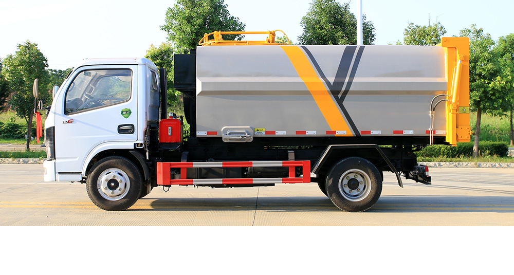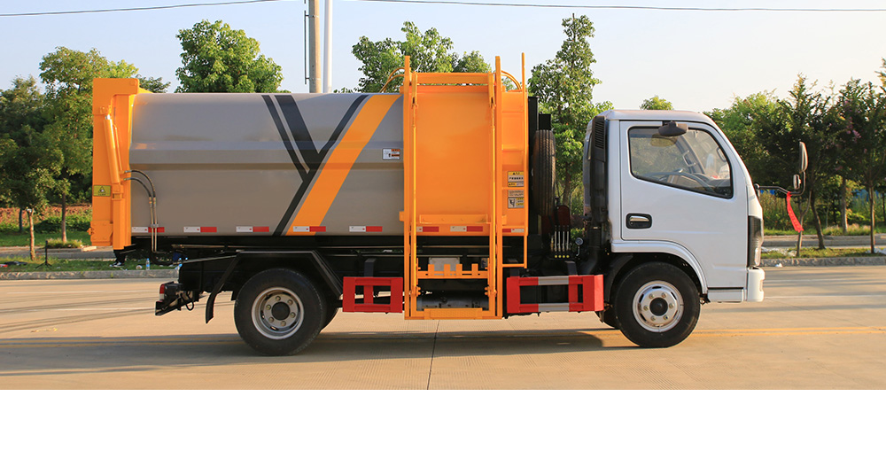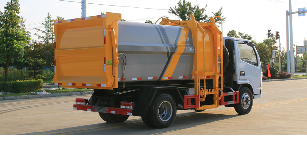箱體采用武鋼優(yōu)質(zhì)碳鋼制作,造型美觀,耐腐蝕性能好,投料口采用密閉形式,防止氣味散發(fā);該車液壓系統(tǒng)簡單,采用電控、手控雙系統(tǒng),可實現(xiàn)一鍵控制,具有操作簡便、裝載容量大、故障率低、維護方便等優(yōu)點。