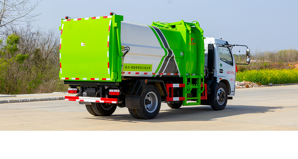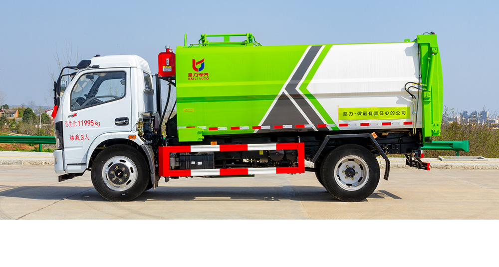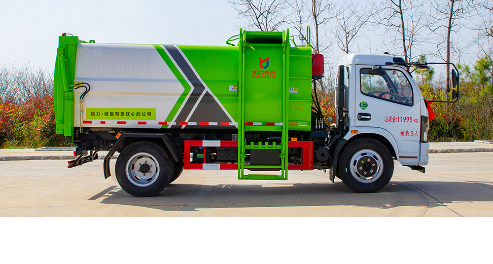 凱力風(fēng)側(cè)裝壓縮式垃圾車是通過拉桿提升垃圾桶自動倒入垃圾,并往車廂后方推動擠壓垃圾,達(dá)到壓縮垃圾的目的,壓縮原理是采用機、電、液壓聯(lián)動控制系統(tǒng)、電腦控制及手動操作系統(tǒng),通過填裝器和推鏟等裝置實現(xiàn)垃圾倒入、壓碎或壓扁,并將垃圾擠入車廂壓實和推卸。