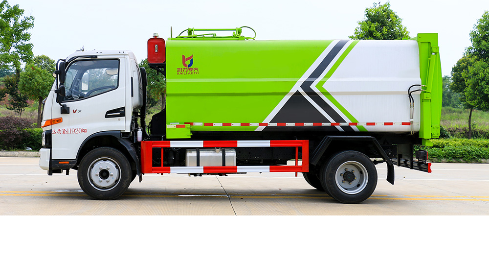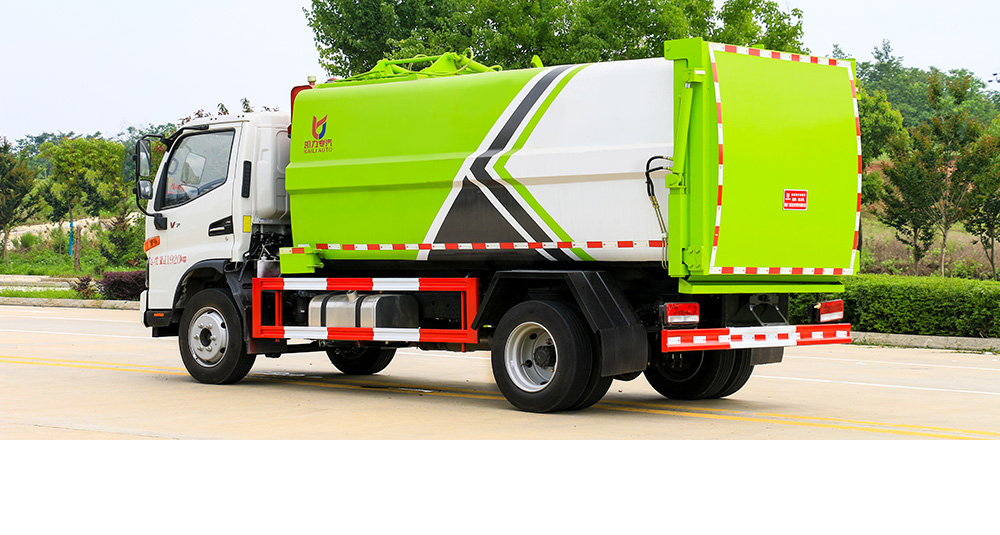 箱體采用武鋼優(yōu)質(zhì)碳鋼制作,造型美觀,耐腐蝕性能好,投料口采用密閉形式,防止氣味散發(fā);該車液壓系統(tǒng)簡單,采用電控、手控雙系統(tǒng),可實(shí)現(xiàn)一鍵控制,具有操作簡便、裝載容量大、故障率低、維護(hù)方便等優(yōu)點(diǎn)。