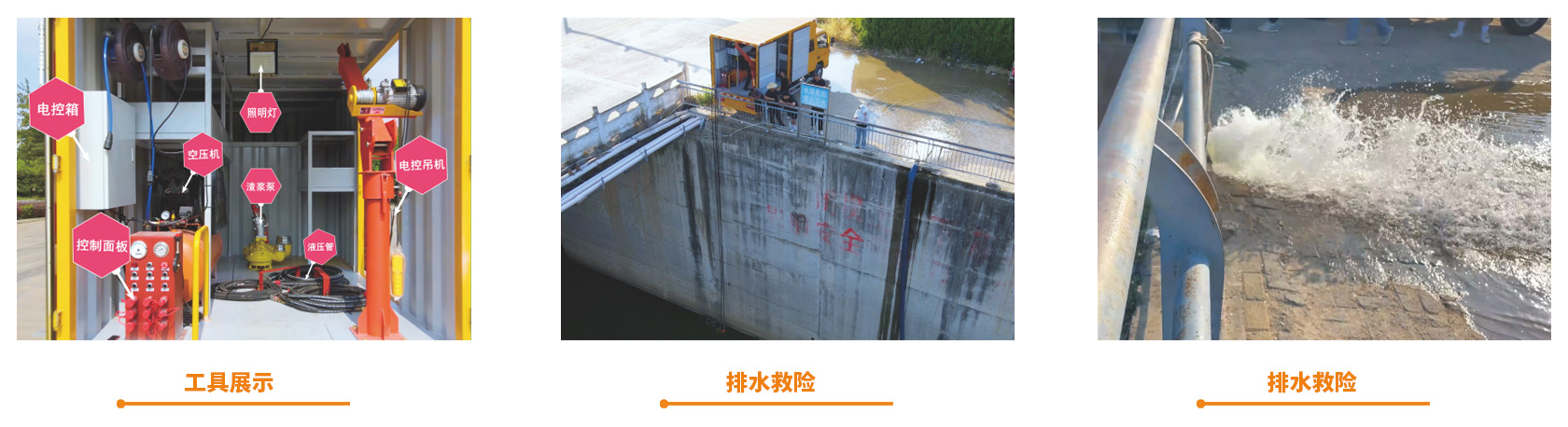 該車配備大功率空壓機(jī),液壓驅(qū)動(dòng),帶有20米的氣管,使用方便。集成控制系統(tǒng)采用液壓快速接頭,可同時(shí)為3臺渣漿泵提供動(dòng)力,操作簡單方便,工作效率高。液壓排水系統(tǒng)標(biāo)配一個(gè)6寸和一個(gè)4寸渣漿泵,單臺水泵最大流量330m3/h和150m3/h,最大揚(yáng)程25m,最大水平輸送距離300m,水泵最大可通過直徑60mm的顆粒物。
