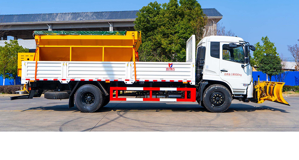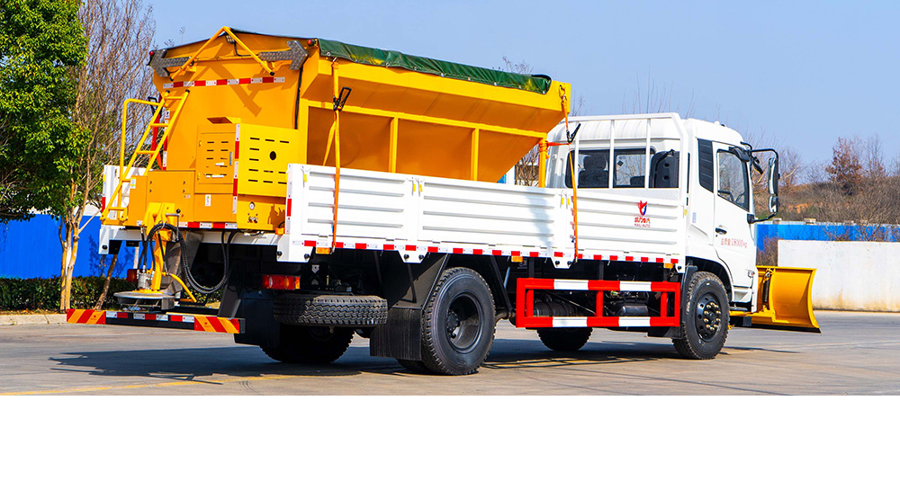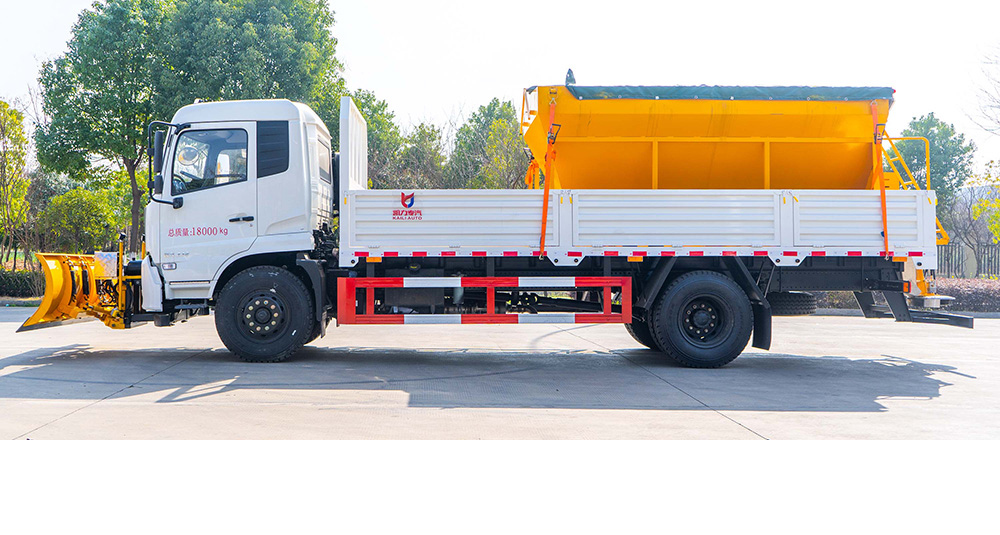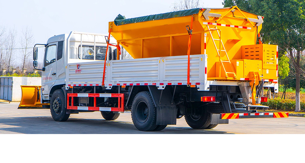 融雪撒布機(jī)可撒布鹽、砂、融雪劑等多種融雪物料,整機(jī)采用專用升降支撐系統(tǒng),拆卸方便,不影響車輛其他功能的使用。