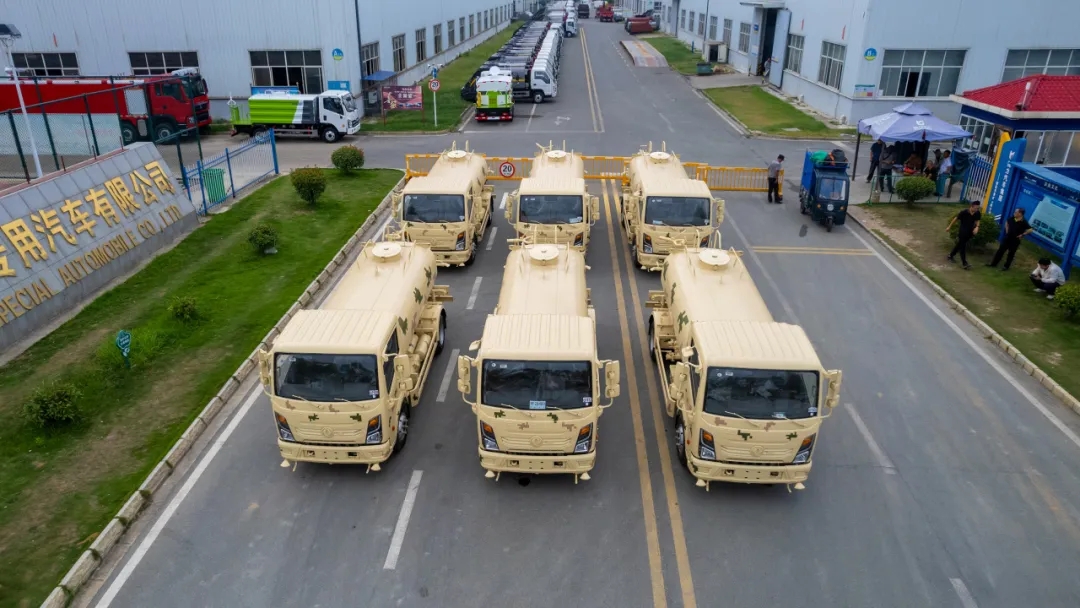 引擎聲威震天,隊列齊整如刃!凱力風(fēng)打造的東風(fēng)新款T17灑水戰(zhàn)隊,以“受閱”之姿展現(xiàn)實力——每一臺車身線條挺拔,每一組管路布局精準(zhǔn),既是對高端工藝的檢閱,更是凱力風(fēng)“以匠心助強軍、以品質(zhì)護強國”的生動踐行!