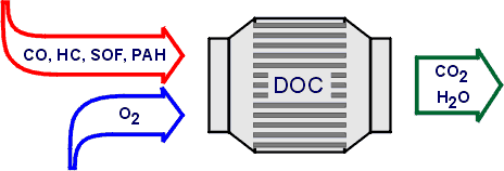 將尾氣中NO轉(zhuǎn)換為 NO2,生成強(qiáng)氧化劑,用于DPF再生。氧化(燃燒)進(jìn)入DOC內(nèi)的碳?xì)浠衔铮ú裼停a(chǎn)生熱量,為DPF再生提供高溫環(huán)境氧化發(fā)動(dòng)機(jī)燃燒排出的HC化合物。