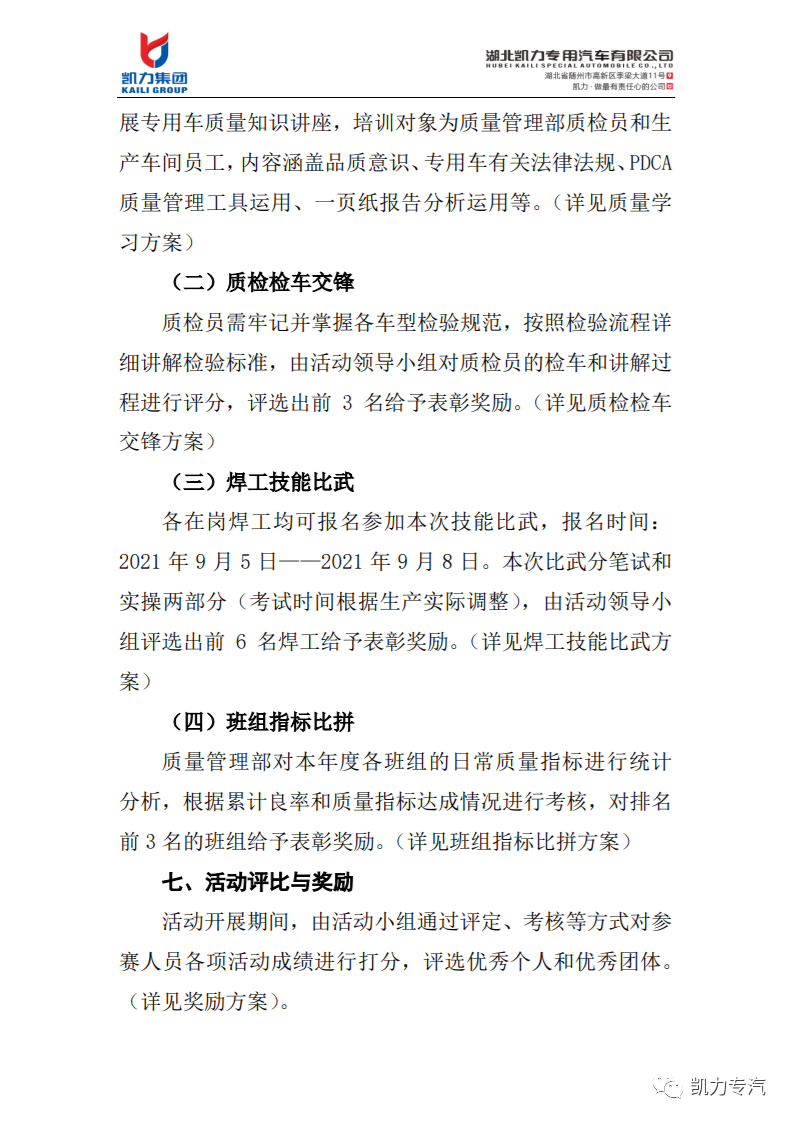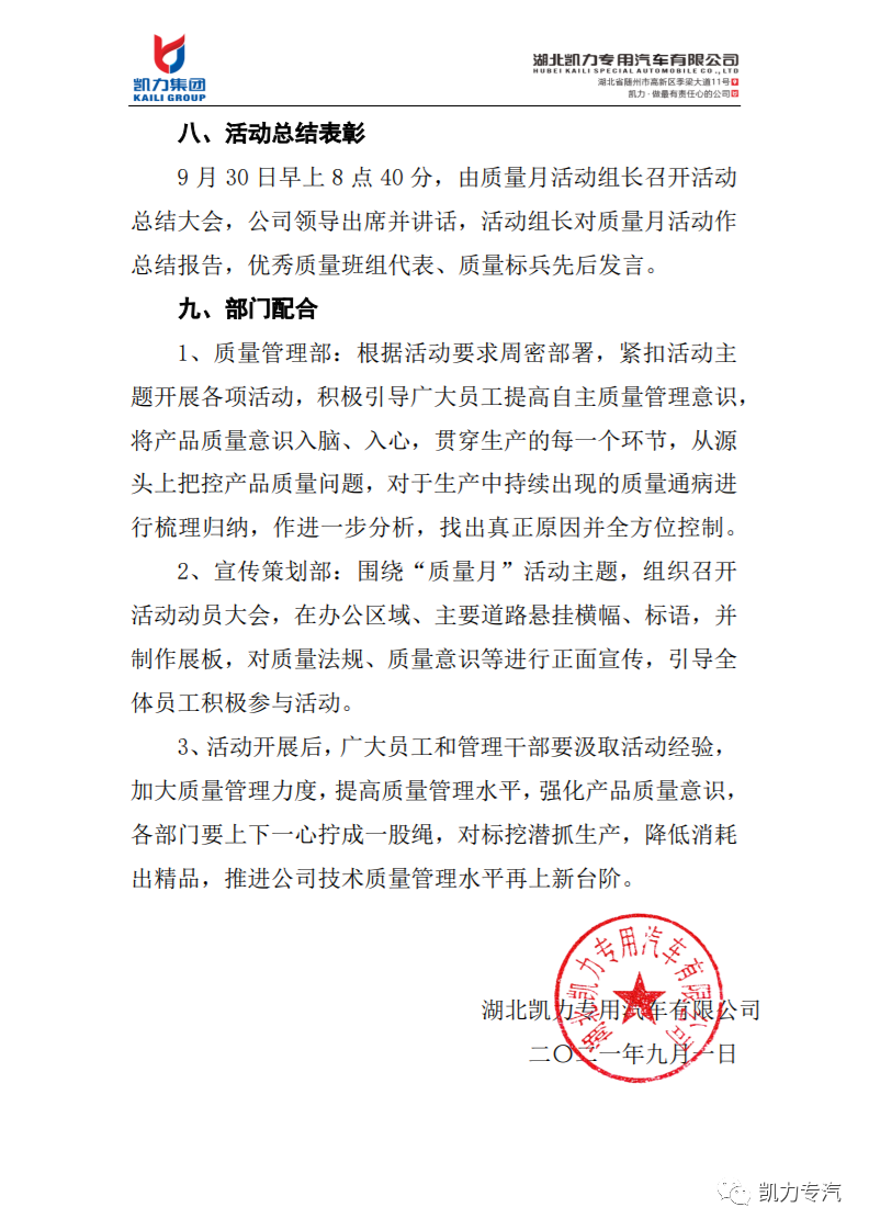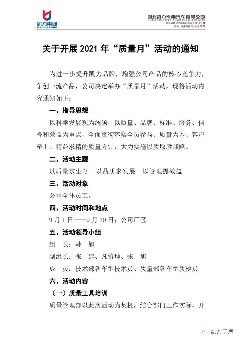 凱力專汽開展2021“質(zhì)量月”