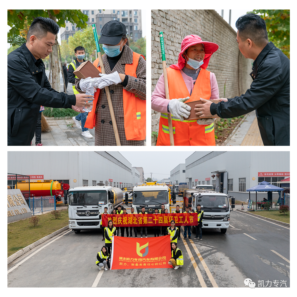 今年的10月26日是湖北省第二十四個環(huán)衛(wèi)工人節(jié),“寧愿一人臟,換來萬家潔”,環(huán)衛(wèi)工人用辛勤勞動換來了城市環(huán)境的潔凈美好,值得所有人的尊重與理解。為了表達(dá)對城市“美容師”的敬意,凱力專汽攜手高新區(qū)環(huán)衛(wèi)管理部門積極開展“秋冬送溫暖·情系環(huán)衛(wèi)工”的暖心活動,關(guān)心關(guān)愛環(huán)衛(wèi)工人,并呼吁全社會積極參與,共同建設(shè)美好家園。