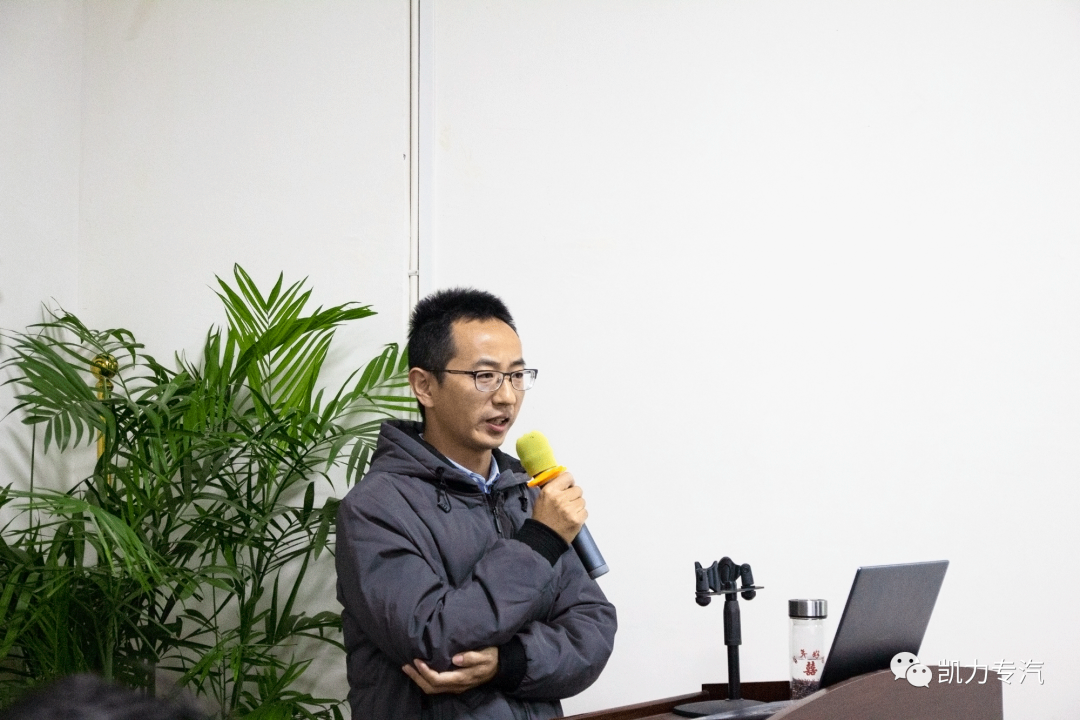 會議第三項議程,用友湖北分公司技術總監(jiān)蘇大鵬上臺發(fā)言。蘇總表達了對凱力ERP項目上線成功的期待,期待ERP項目可以助力凱力騰飛,飛得更高!