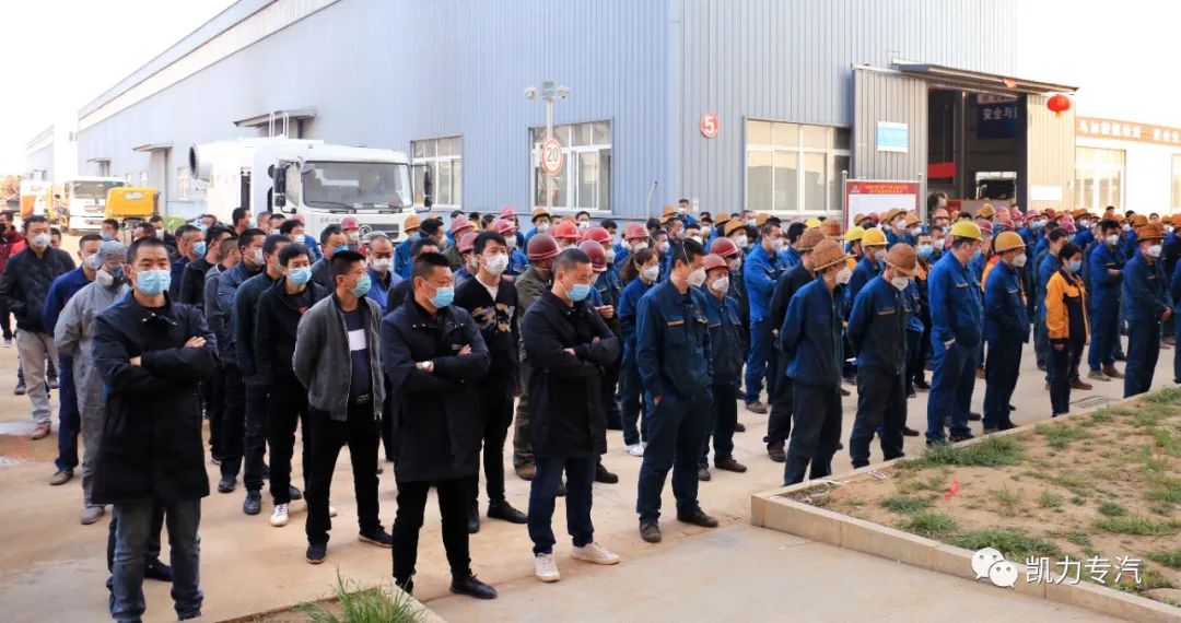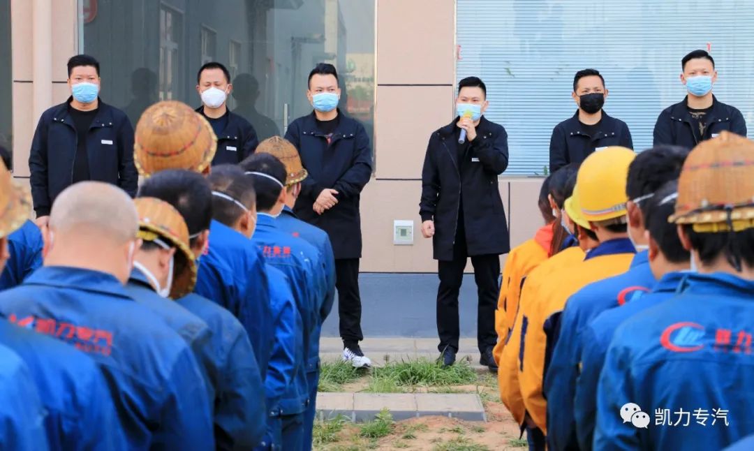 4月9日7時(shí)30分,全體凱力員工在辦公大樓前集結(jié),隆重舉行“奮戰(zhàn)六十天,增產(chǎn)一千臺(tái),助力七十億”全員誓師動(dòng)員大會(huì)。