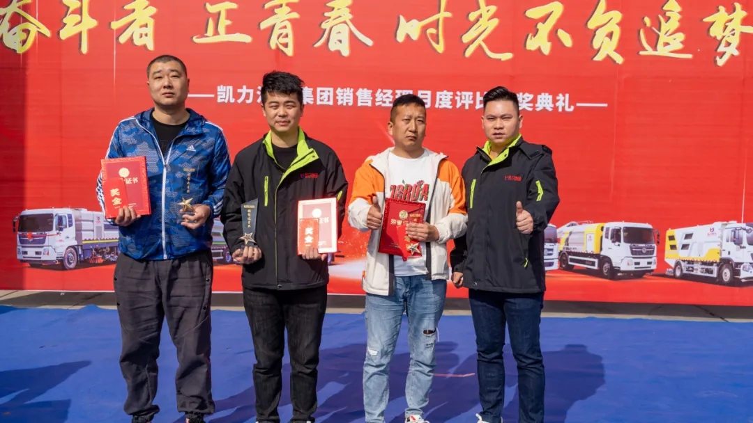 ● 凱力汽車集團(tuán)銷售經(jīng)理月度評(píng)比頒獎(jiǎng)典禮盛大舉行。集團(tuán)董事長(zhǎng)梁杰對(duì)大家的工作成果給予肯定,為銷售精英們頒發(fā)榮譽(yù)證書(shū)及現(xiàn)金獎(jiǎng)勵(lì),希望全體營(yíng)銷人員再接再厲進(jìn)一步拓展市場(chǎng),形成一個(gè)愛(ài)崗敬業(yè)、學(xué)優(yōu)爭(zhēng)先的工作氛圍,共同為公司2023年度發(fā)展目標(biāo)開(kāi)創(chuàng)新的局面。