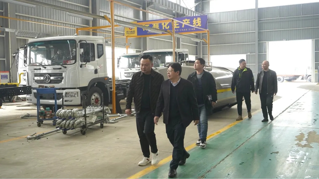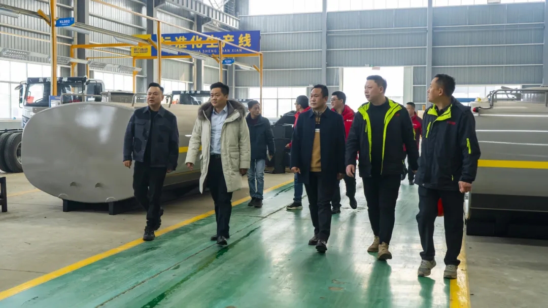 湖北省十堰市茅箭區(qū)區(qū)委常委吳杰鵬一行領(lǐng)導(dǎo)蒞臨凱力汽車集團(tuán)參觀考察,深入了解凱力汽車集團(tuán)的智能化制造實(shí)力。