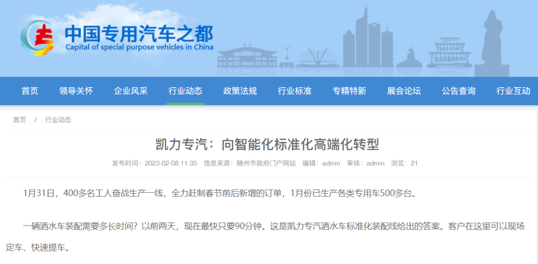 官媒報(bào)道:凱力專汽邁向智能化、標(biāo)準(zhǔn)化、高端化發(fā)展之路