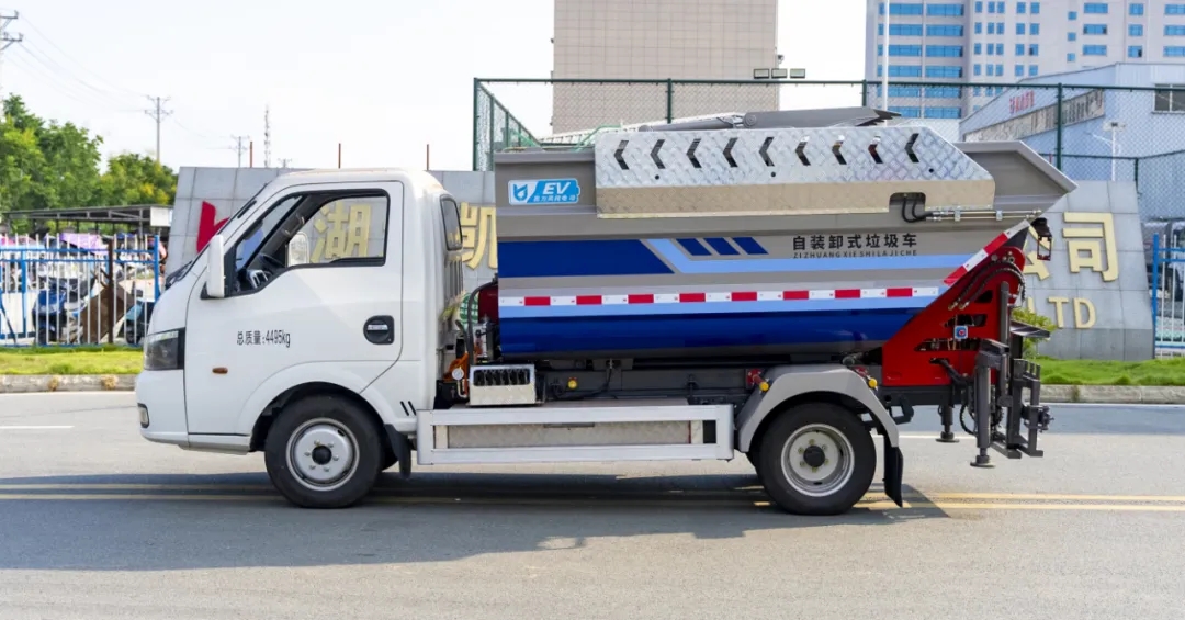 凱力風(fēng)小神童自裝卸式垃圾車,可上綠牌,車身小巧、靜音環(huán)保,續(xù)航里程達115km。液壓推板、裝料更多。優(yōu)質(zhì)液壓、穩(wěn)定可靠。操作簡單、便于維修。