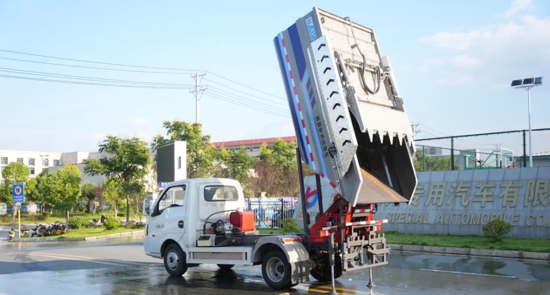 底盤換電動,上裝升級,三電系統(tǒng)穩(wěn)定可靠。刮板進料、壓縮率高。舉升自卸、卸料干凈。翻桶機構(gòu)、進料快捷。自動化高,電液聯(lián)合。